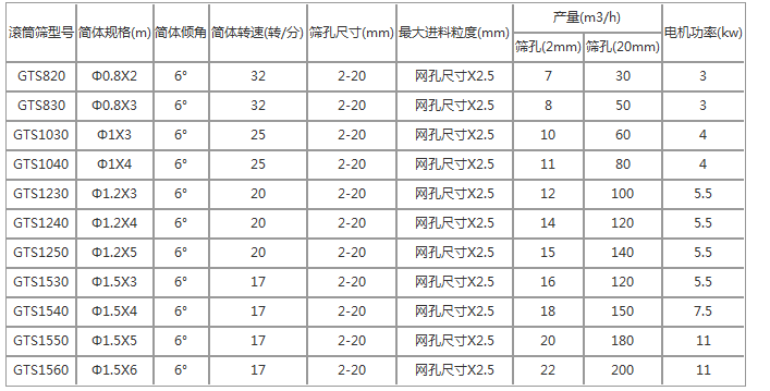滾筒篩技術(shù)參數(shù):